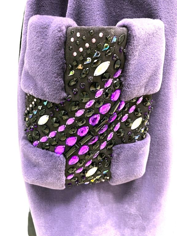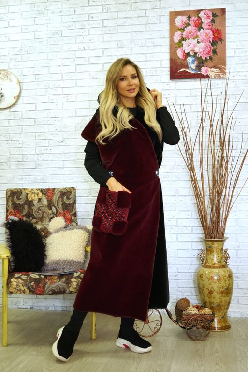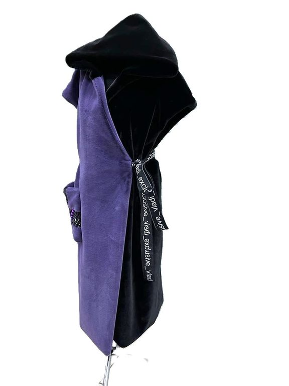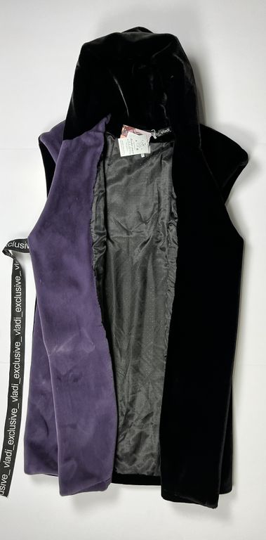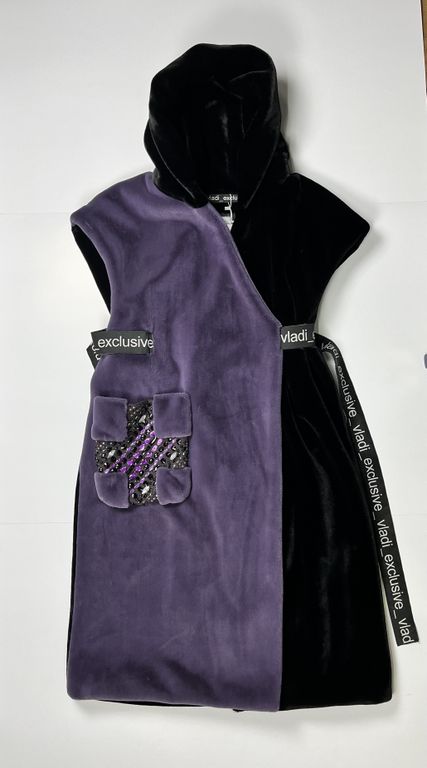 Жилет от меховой фирмы «ВЛАДИ» арт. 2532775005 выполнена из эко меха имитация кролик, высота ворса 0,8 см. Жилет выполнен из двух видов меха: правая полочка сиреневого цвета, остальные элементы черного цвета, стразы акрил, стекло. Логотипный отделочный пояс. Размер универсальный от 46 до 56 - 58, длина по спинке 120 см. Подборт меховой очень широкий. Капюшон двусторонний меховой. Подкладка поливискоза. Рекомендуем носить жилет поверх куртки, пуховика или пальто. В качестве утепления в холодную погоду.