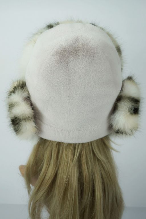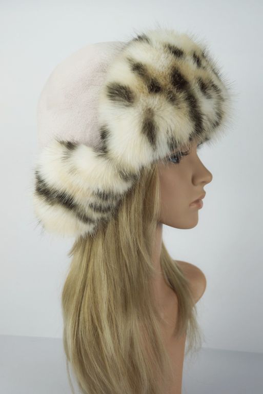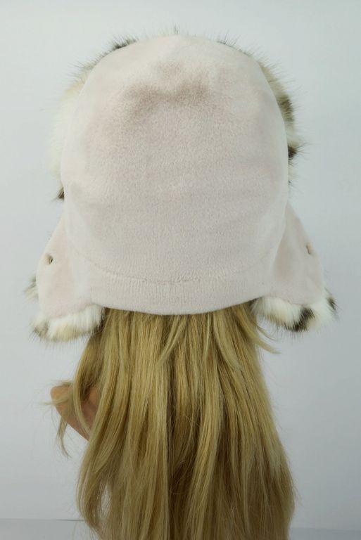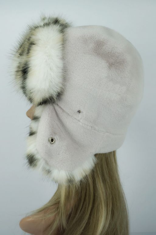 Женская ушанка "НОН-СТОП" от меховой фирмы "ВЛАДИ" арт. 2221509003 . Верх: эко мех кролик цвет пудра. Отделка уши и козырь эко мех рысь. Ушки застегиваются на кнопки. В комментарии к заказу укажите размер 56-58 или 59-60.