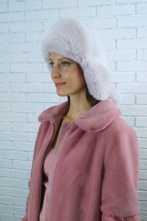 Женская ушанка "НОРД" от меховой фирмы "ВЛАДИ" арт. 2222019019 . Верх: эко мех кролик цвет жемчуг. Отделка уши и козырь эко мех песец цвет жемчуг. В комментарии к заказу укажите, пожалуйста, размер 56-58 или 59-60.